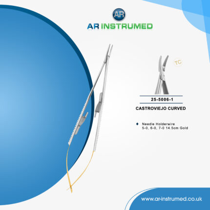 Needle Holder Castroviejo Curved wire 5-0, 6-0, 7-0 18cm (TC) Gold