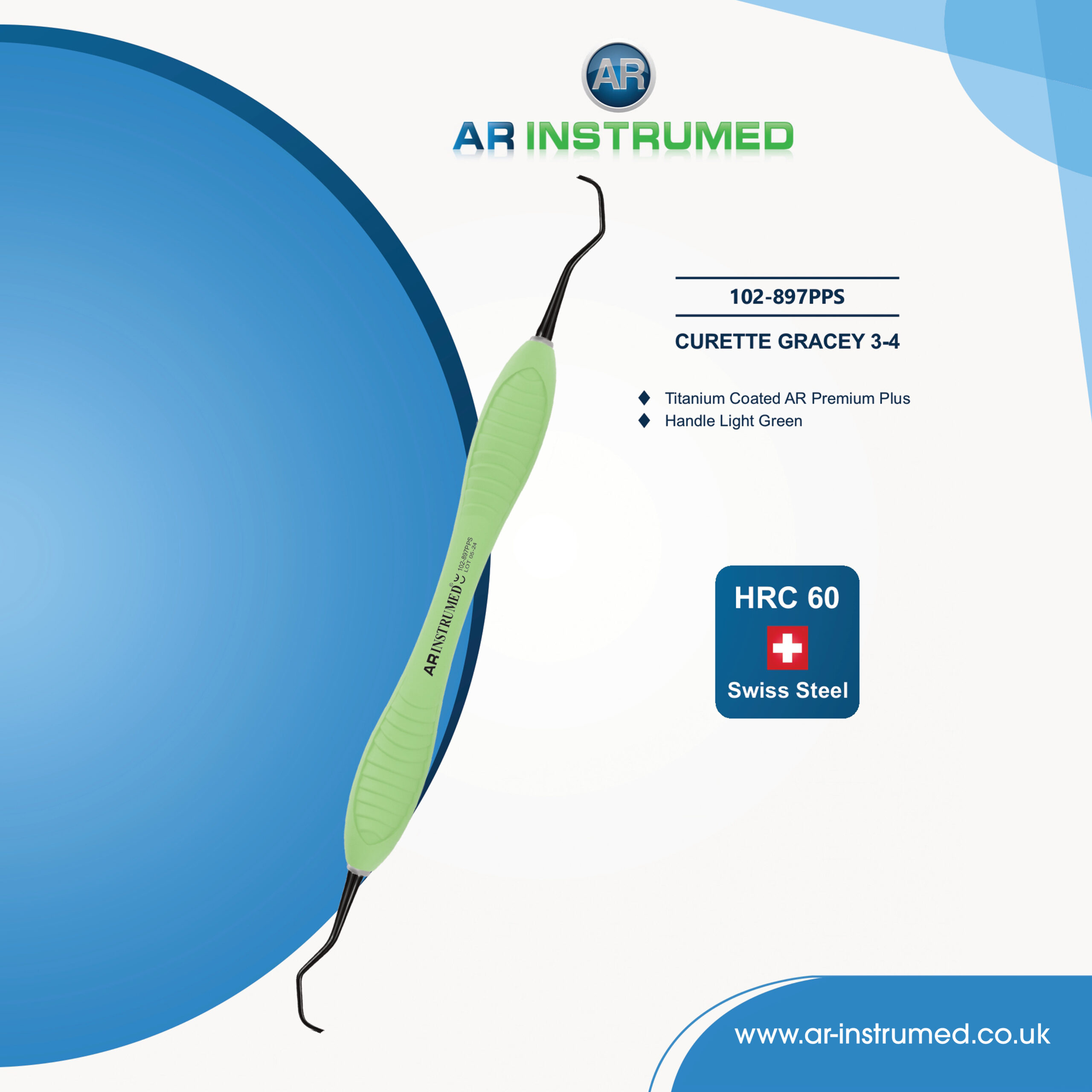 Curette Gracey 3-4 Titanium coated AR Premium Plus Handle Light Green