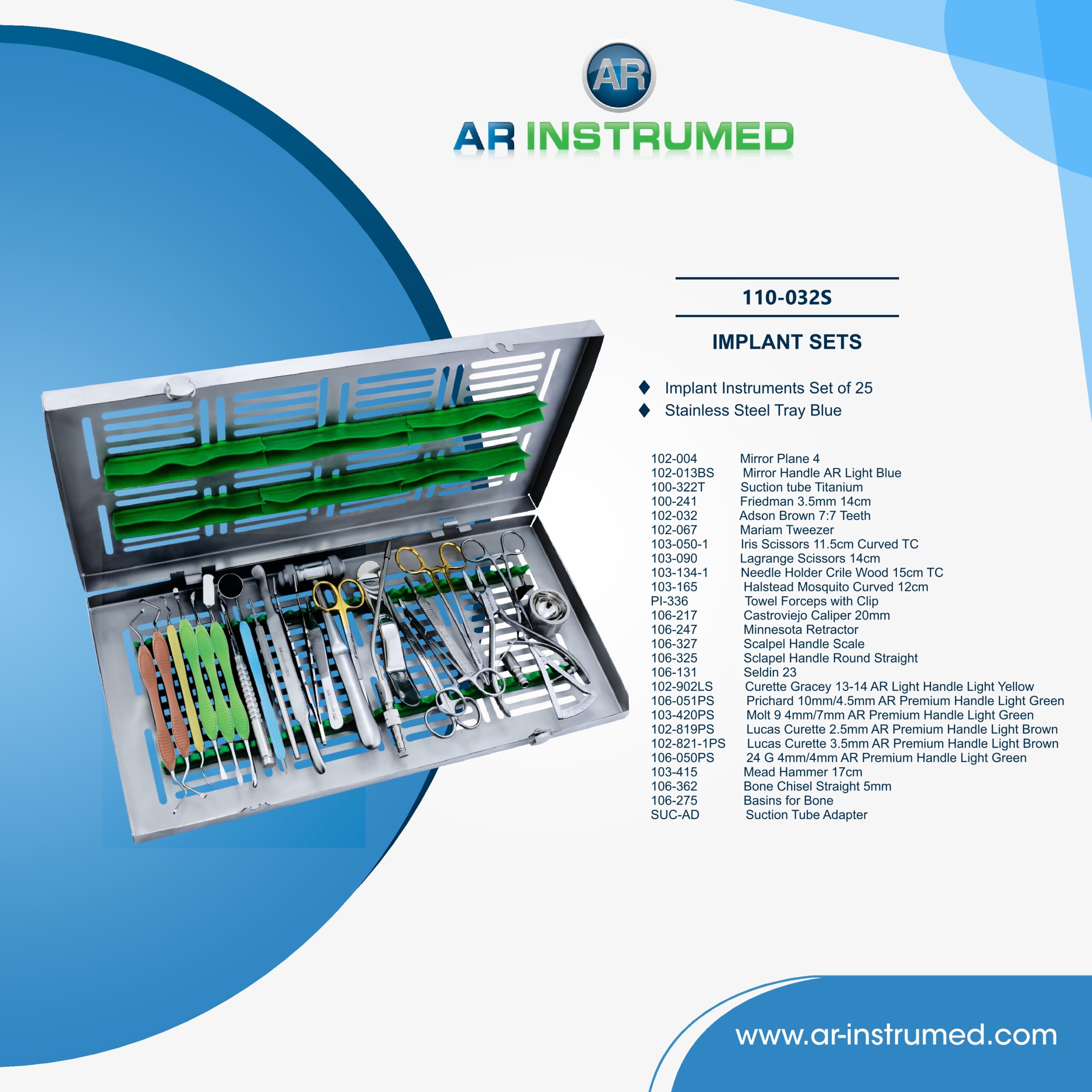 Implant Instruments Set of 25 Stainless Steel Tray