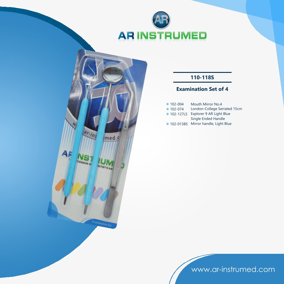 Examination Set of 4 Explorer, Mirror, Mirror Handle, Tweezer AR Light Handles