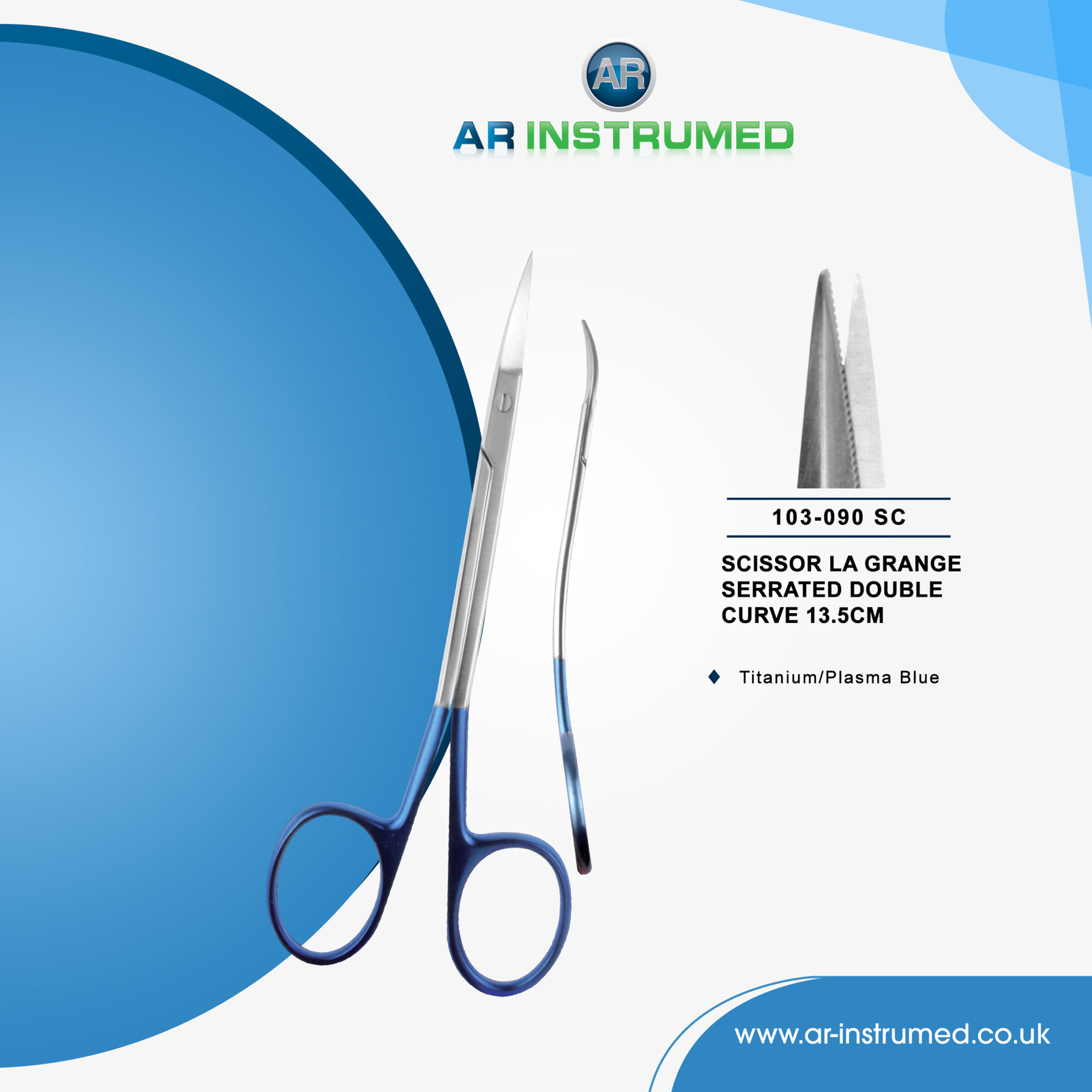 Scissor La Grange Serrated Double Curve 13.5cm Titanium/Plasma Blue
